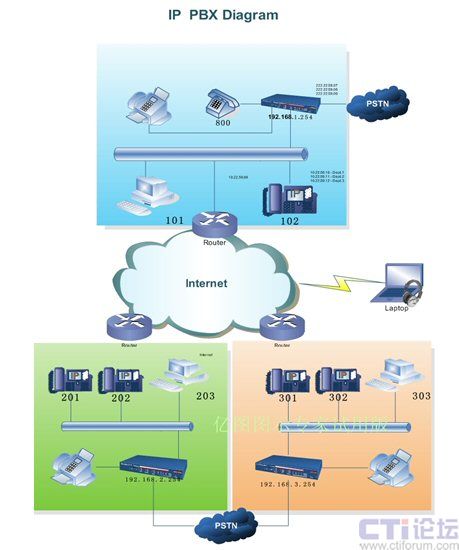 PBX接入網(wǎng)絡(luò)就意味著您的分支機(jī)構(gòu)能夠完全拋棄PSTN直接通話。在此我們建議您使用專(zhuān)線接入方式并在分支機(jī)構(gòu)間建立VPN已保證更好的通話質(zhì)量和網(wǎng)絡(luò)安全性。