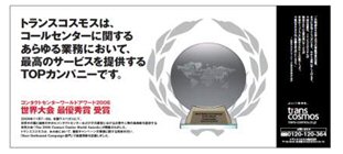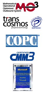 引進國際領先的MO3(獲得2006 “Contact Center World Award” 最優(yōu)秀獎)呼出技術:MO3是母公司transcosmos獨力研發(fā)的呼出服務體系。通過對數據的充分分析和挖掘,以“顧客行動模式”為基礎,預測“哪個顧客、哪個坐席、在哪個時間點、提供什么樣的服務、進行怎樣的進一步接觸”,以及精確計算是否收到最大投資和成效比(ROI),實行最有效的和顧客接觸的運營。