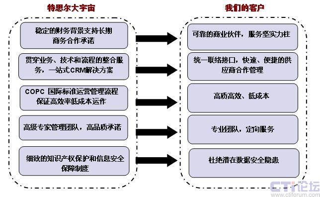 為了在21世紀取得更大的發(fā)展,特思爾大宇宙?zhèn)鞒心腹総ranscosmos多年經營理念及微創(chuàng)技術優(yōu)勢,沿襲“營銷鏈管理”這一嶄新外包服務概念。我們力求成為中國呼叫中心營銷鏈管理服務的先驅者,通過實時營銷活動把企業(yè)和消費者緊密聯系在一起的呼叫中心/互動聯絡中心的聯動,使營銷活動最適化和高效化,提高顧客滿意度,幫助客戶企業(yè)贏得更多潛在顧客,增加銷售額,成為客戶企業(yè)堅實商業(yè)合作伙伴。
