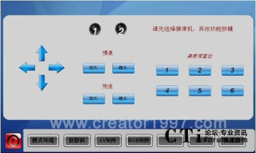 CTI論壇(ctiforum)1月25日消息(記者 潘婷):在業(yè)務不斷攀升的同時,廣東移動公司對培訓直播室也進行了進一步的提升,采用了CREATOR快捷的中控系統(tǒng)和矩陣系列產(chǎn)品,其中,中控設備是CREATOR快捷PGMII型高端中央控制可編程主機,通過無線真彩觸摸屏ST-7600C作為控制媒介,主要控制了矩陣、投影機、DVD、攝像機等外圍設備,對整個會議室實現(xiàn)有線全智能人性化控制。通過對矩陣進行控制切換信道,實現(xiàn)了多個電腦會議信號的快速轉換和AV信號的切換。矩陣采用了8*4的RGB矩陣和8*4的AV矩陣,可以方便的對電腦信號和AV信號進行簡單的切換。通過紅外發(fā)射棒對DVD和攝像機進行控制,體現(xiàn)了多媒體控制系統(tǒng)的優(yōu)越性,本系統(tǒng)還通過攝像跟蹤的原理來實現(xiàn)教室直播的錄制。