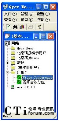 系統(tǒng)已經(jīng)默認(rèn)將這三個(gè)賬戶加入了分組。如上圖所示。 這樣客戶端運(yùn)行起來以后就可以發(fā)起視頻會(huì)議進(jìn)行視頻會(huì)議了,不需要再在服務(wù)器端進(jìn)行任何操作。這三個(gè)賬戶可以隨意的更改密碼、如果不想使用這三個(gè)賬戶名,可以刪除重新建立賬戶名,除此以外,還可以建立新的賬戶,并加入分組。這些操作都是在服務(wù)器端進(jìn)行的。詳細(xì)的操作請參看用戶手冊或者是FLASH教程。有了用戶名和密碼以后,無論走到哪里,使用任意一臺電腦登錄自己的帳號,就可以參加會(huì)議,這樣就無需服務(wù)器端總是臨時(shí)變更組成員。