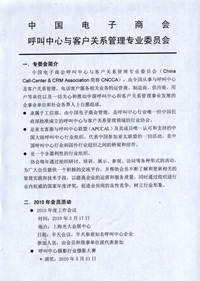 中國(guó)電子商會(huì)呼叫中心與客戶關(guān)系管理專業(yè)委員會(huì)(China Call-Center & CRM Association簡(jiǎn)稱CNCCA),由全國(guó)從事與呼叫中心及客戶關(guān)系管理,電話客戶服務(wù)相關(guān)業(yè)務(wù)的運(yùn)營(yíng)商、制造商、供應(yīng)商、用戶等單位以及一切關(guān)心和推動(dòng)中國(guó)呼叫中心和客戶關(guān)系管理事業(yè)發(fā)展的企事業(yè)單位和社會(huì)各界人士自愿組成。