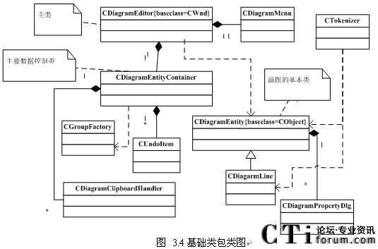 CDiagramEntityContainer類包含了一個CObArray對象,它是由一組繼承CDiagramEntity類的實例,用來為編輯器存放實時的數(shù)據(jù)。同時,也包含了一個CDiagramClipboardhandler指針(作為一個或者多個編輯器間的剪切板)。它還包含了一組CUndoItem用來實現(xiàn)撤銷棧。