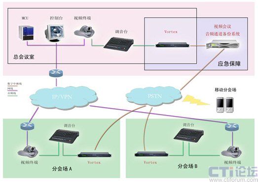 VORTEX 2241:3臺 放置于北京主會場。該設(shè)備可實(shí)現(xiàn)視頻會議的語音同備份語音無縫結(jié)合,確保兩路聲音切換時,與會者不會察覺;顯著減少發(fā)至其它站點(diǎn)的聲音中的環(huán)境噪聲,從而消除麥克風(fēng)和線路輸入和電話接聽音頻的環(huán)境噪聲,提高現(xiàn)有會議裝置的整體音質(zhì)。