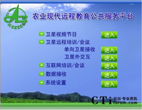 農(nóng)業(yè)現(xiàn)代遠(yuǎn)程教育平臺(tái)將先進(jìn)的多媒體寬帶DVB衛(wèi)星通信系統(tǒng)和全面的網(wǎng)絡(luò)遠(yuǎn)程教育培訓(xùn)/會(huì)議系統(tǒng),天(衛(wèi)星網(wǎng))地(互聯(lián)網(wǎng))合一,集成廣播、電視和網(wǎng)絡(luò)的功能,形成了廣覆蓋、大容量、多功能、低成本、快捷高效的遠(yuǎn)程教育培訓(xùn)網(wǎng)絡(luò)、技術(shù)培訓(xùn)資源傳輸通道和網(wǎng)絡(luò)視頻會(huì)議系統(tǒng),是面向“三農(nóng)”開展多形式多層次現(xiàn)代遠(yuǎn)程教育培訓(xùn)、科學(xué)普及、技術(shù)推廣和信息傳播的公共服務(wù)平臺(tái)。同時(shí),該平臺(tái)也是首個(gè)將視頻會(huì)議/培訓(xùn)接入衛(wèi)星網(wǎng)絡(luò)的系統(tǒng),將遠(yuǎn)程視頻會(huì)議帶入了新的通訊領(lǐng)域,也為遠(yuǎn)程視頻會(huì)議的運(yùn)用開創(chuàng)了一片新的天地。
