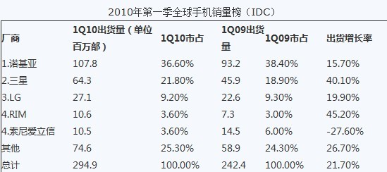 RIM替代Moto進(jìn)入前五是全球手機版圖的重要變化。事實上自2005年第二季度索尼愛立信替代明基西門子進(jìn)入前五以來,這五大廠商的名單就再也沒有變化過。RIM進(jìn)入前五的事實證明了智能手機市場的巨大潛力,而摩托羅拉近期也在試圖通過一系列Android機型重現(xiàn)昔日榮光。
