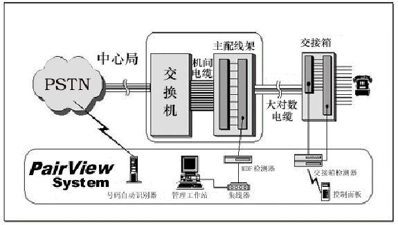 PairView的管理工作站是一臺個人電腦,與控制站(Control Station)相連,也可與電信公司的數(shù)據(jù)庫系統(tǒng)相連。管理工作站運行PairView的應用程序,生成和控制數(shù)據(jù)庫。