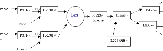 HXD09能滿足各種網絡條件下的應用。組網拓撲圖如下: