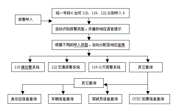 人口、旅館業(yè)逃犯比對(duì)報(bào)警接口等其他多種特服或報(bào)警系統(tǒng)的接口,為今后多種特服、多種報(bào)警綜合接警打下基礎(chǔ)。