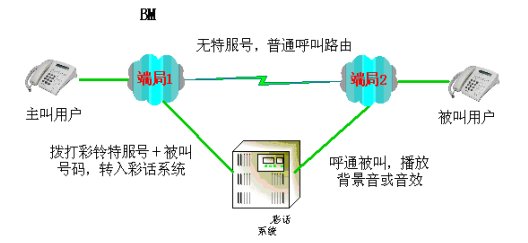 當(dāng)主叫呼叫被叫時(shí),電信運(yùn)營商智能網(wǎng)自動(dòng)啟動(dòng)彩話業(yè)務(wù)。