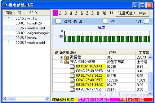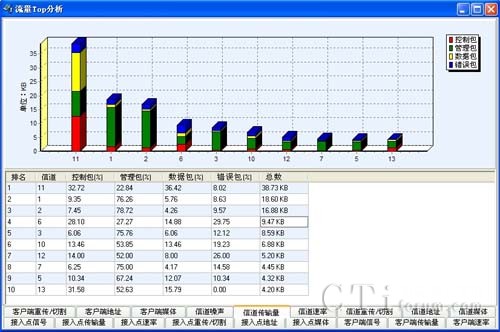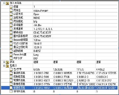 該系統(tǒng)能夠向用戶提供豐富的802.11 a/b/g/n無線參數(shù),包括信號強(qiáng)度覆蓋參數(shù),同頻干擾及鄰頻干擾參數(shù),管理幀、控制幀、數(shù)據(jù)幀及各種無線幀傳輸速率的統(tǒng)計參數(shù)等;系統(tǒng)能基于以上各類統(tǒng)計參數(shù),并通過實時進(jìn)行各種數(shù)據(jù)業(yè)務(wù)測試,獲取網(wǎng)絡(luò)的數(shù)據(jù)業(yè)務(wù)參數(shù)指標(biāo),分析WLAN網(wǎng)絡(luò)質(zhì)量問題。