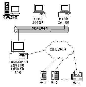 現(xiàn)有醫(yī)院的觸摸屏式導(dǎo)航系統(tǒng)只能局限到醫(yī)院內(nèi)部,如要內(nèi)外結(jié)合,不論是效益或影響力上,都將是很可觀的。HaKeySender醫(yī)院綜合信息電話導(dǎo)航系統(tǒng)正是基于這種考慮,利用現(xiàn)有比較發(fā)達(dá)的電話網(wǎng),跟蹤和吸收發(fā)達(dá)國家的先進(jìn)技術(shù),采用了計(jì)算機(jī)網(wǎng)絡(luò)技術(shù),數(shù)字信號處理技術(shù)以及多媒體技術(shù),開發(fā)出的智能HaKeySender醫(yī)院綜合信息電話導(dǎo)航系統(tǒng),為各醫(yī)療服務(wù)機(jī)構(gòu)提供了全面有效的解決方案。