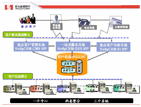 ·三個系統(tǒng):即重點客戶管理子系統(tǒng)(HollyCRM-CMS-VIP);重點客戶分析子系統(tǒng)(HollyCRM-BI-VIP);一站式服務(wù)子系統(tǒng)(HollyCRM-OSS-VIP)。