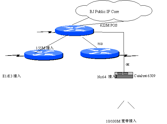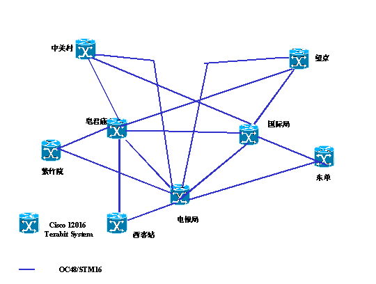 北京電信公眾IP網(wǎng)中,骨干網(wǎng)核心節(jié)點路由器為業(yè)界最 先進的新一代電信級高性能的路由交換機 Cisco GSR 12016太比特系統(tǒng);