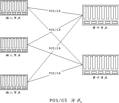 北京電信公眾IP網(wǎng)的接入節(jié)點與骨干節(jié)點之間的連接根據(jù)線路和帶寬的要求采用Packet Over