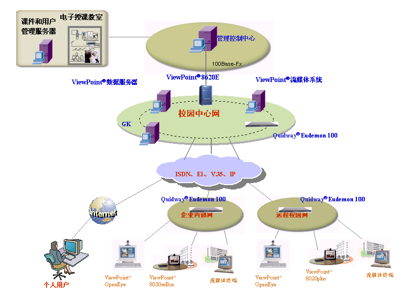 對于專網(wǎng)或非面向運(yùn)行的視訊網(wǎng)絡(luò)建設(shè),“視點(diǎn)通”ViewPoint®8000綜合視訊系統(tǒng)可以提供寬窄帶一體化的視訊交換平臺,提供各種線路接口方式,可充分利用專網(wǎng)和企業(yè)的現(xiàn)有網(wǎng)絡(luò),同時考慮網(wǎng)絡(luò)的發(fā)展需要,支持?jǐn)U展其它接口,保護(hù)用戶投資。