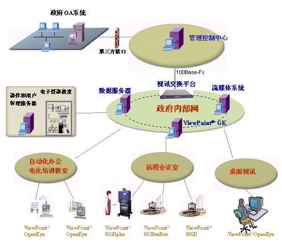 “視點(diǎn)通”ViewPoint®8000綜合視訊系統(tǒng)可以滿足不同領(lǐng)域用戶的多種視訊業(yè)務(wù)需求:遠(yuǎn)程教學(xué)、異地會商、遠(yuǎn)程醫(yī)療、應(yīng)急通信、軍事會議、遠(yuǎn)程監(jiān)控、遠(yuǎn)程調(diào)度、會議出租、家庭應(yīng)用等。