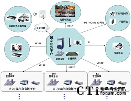 華為應(yīng)急指揮視頻會(huì)議解決方案采用多種接入方式,包括衛(wèi)星線路、PSTN、E1、IP、GSM、3G等。系統(tǒng)采用星型及樹型混合組網(wǎng)方式。