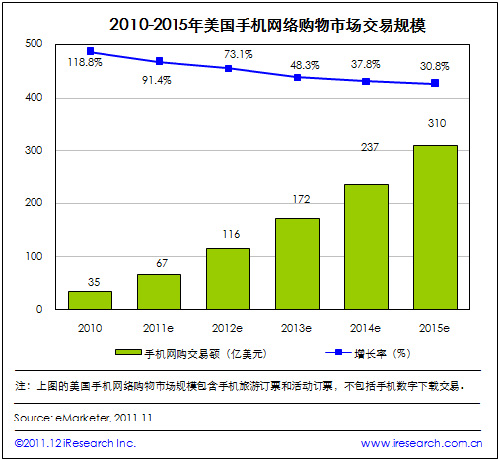 2015年美國手機網(wǎng)購交易規(guī)模將達到310億美元