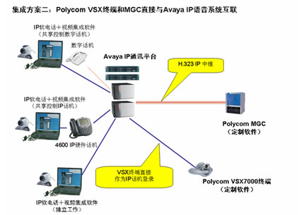 安裝了視頻集成的Avaya IP軟電話會(huì)提供相應(yīng)的視頻配置菜單、視頻配置和控制案鈕及視頻狀態(tài)指示。集成視頻的IP軟電話之間可以直接進(jìn)行點(diǎn)對(duì)點(diǎn)視頻和語(yǔ)音通訊,同時(shí)也可以和內(nèi)置多點(diǎn)功能的Polycom VSX視頻終端和MGC會(huì)議橋?qū)崿F(xiàn)多方視頻語(yǔ)音會(huì)議。