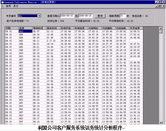 隨著利盟公司客戶服務(wù)系統(tǒng)的開(kāi)通,使傳統(tǒng)的電話服務(wù)提高到了一個(gè)新的階段;一方面借助客戶服務(wù)系統(tǒng)提供的統(tǒng)計(jì)分析功能,使客戶服務(wù)中心的績(jī)效考核更加準(zhǔn)確、高效和科學(xué);另一方面通過(guò)應(yīng)用先進(jìn)的信息技術(shù)和產(chǎn)品,可以極大地提高客戶服務(wù)的質(zhì)量、效率和滿意度,從而對(duì)提升公司形象,促進(jìn)產(chǎn)品銷(xiāo)售發(fā)揮積極的作用。