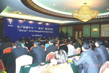 2003年2月21日,五洲賓館長江廳高朋滿座,由香港資深Call Center服務(wù)商易寶通訊服務(wù)有限公司主辦的電信行業(yè)客戶接觸中心"一體化"服務(wù)管理研討會在這里隆重舉行。全國各地的電信、移動、聯(lián)通、網(wǎng)通等運(yùn)營商及易寶的合作伙伴共四十多家單位的Call center負(fù)責(zé)人和專家參加了此次會議。