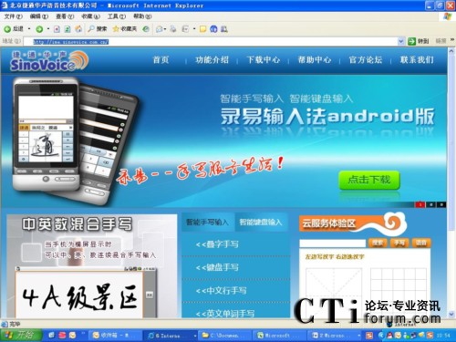 CTI論壇(ctiforum)6月28日消息(記者 潘婷婷):6月28日,由捷通華聲傾力打造的云手寫官方網(wǎng)站(ime.sinovoice.com.cn)正式上線,并開始全方位地為用戶提供各種手寫產(chǎn)品體驗(yàn)及技術(shù)服務(wù)。用戶點(diǎn)擊進(jìn)入捷通華聲云手寫官方網(wǎng)站首頁,即可開啟手寫識(shí)別輸入的體驗(yàn)之旅。