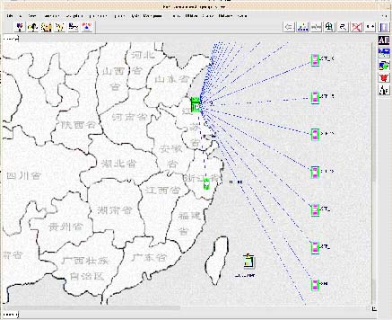 ●網(wǎng)絡(luò)結(jié)構(gòu)和網(wǎng)絡(luò)狀態(tài)總覽:按照網(wǎng)元地理位置提供直觀的網(wǎng)絡(luò)視圖,并通過顏色的變化和圖標(biāo)的閃爍表示網(wǎng)元的運行狀態(tài)和鏈路的負荷狀況;