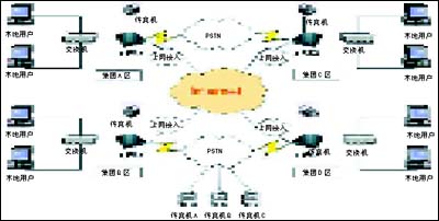3.系統(tǒng)內(nèi)用戶發(fā)送傳真說明:集團(tuán)A區(qū)的用戶如果發(fā)送本地傳真,則在集團(tuán)A區(qū)的e-FAX網(wǎng)絡(luò)傳真機(jī)收到任務(wù)請(qǐng)求后,通過本地的PSTN網(wǎng)絡(luò)發(fā)送傳真,傳真發(fā)送成功后,系統(tǒng)自動(dòng)給發(fā)送人一份傳真通報(bào),發(fā)送完成;集團(tuán)A區(qū)的用戶如果發(fā)送外地傳真,例如發(fā)送到集團(tuán)D區(qū),集團(tuán)A區(qū)的e-FAX網(wǎng)絡(luò)傳真機(jī)會(huì)自動(dòng)根據(jù)收到的任務(wù)請(qǐng)求信息進(jìn)行判斷,根據(jù)判斷的信息,將發(fā)送傳真請(qǐng)求和相應(yīng)的傳真文件通過Internet路由到集團(tuán)D區(qū)的e-FAX網(wǎng)絡(luò)傳真機(jī),集團(tuán)D區(qū)的網(wǎng)絡(luò)傳真機(jī)收到訊息后,會(huì)自動(dòng)通過本地的PSTN發(fā)送傳真任務(wù),發(fā)送結(jié)果會(huì)自動(dòng)通報(bào)到集團(tuán)A區(qū)的發(fā)送人,發(fā)送完成。同理,在集團(tuán)的其他區(qū)域內(nèi)的發(fā)送傳真請(qǐng)求都會(huì)自動(dòng)路由,判斷發(fā)送方式,從而完成發(fā)送任務(wù)。
