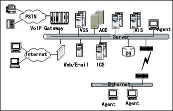 系統(tǒng)內(nèi)部所有媒體呼叫均采用IP數(shù)據(jù)包的格式由核心ACD Server統(tǒng)一處理,完成呼叫控制、路由處理、與呼叫同步的用戶(hù)數(shù)據(jù)管理及信息監(jiān)視。對(duì)于整個(gè)系統(tǒng)而言,雖然媒體接入方式各不相同,但路由策略卻可以完全一致?蛻(hù)可隨時(shí)隨地通過(guò)各種媒體與企業(yè)進(jìn)行緊密聯(lián)系。通過(guò)核心控制系統(tǒng),采用一致的路由方式,可以追蹤及管理所有媒體以及一切客服系統(tǒng)人力資源。