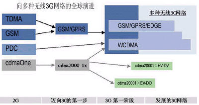 移動(dòng)多媒體服務(wù)需要網(wǎng)絡(luò)具有更高的速度和更大的容量。蘇敏芬詳細(xì)描述了網(wǎng)絡(luò)由2G向3G演進(jìn)的過(guò)程(如圖1)。據(jù)介紹,2G的技術(shù)基于多種標(biāo)準(zhǔn),包括TDMA、GSM、PDC和cdmaOne。其中,TDMA是美國(guó)采用最廣泛的2G技術(shù),但現(xiàn)在,美國(guó)的運(yùn)營(yíng)商已經(jīng)越來(lái)越多地開(kāi)始采用GSMc以及GPRS、EDGE等基于GSM的技術(shù);GSM存在于全球70%的運(yùn)營(yíng)商網(wǎng)絡(luò),這種全球化技術(shù)不僅能夠給最終用戶(hù)提供服務(wù)、漫游以及通信質(zhì)量方面的很多好處,它還可以節(jié)省運(yùn)營(yíng)商的投資,在從GSM向WCDMA演進(jìn)的過(guò)程中,也會(huì)為運(yùn)營(yíng)商帶來(lái)諸多裨益。PDC是在日本被廣泛采用的一種技術(shù)標(biāo)準(zhǔn),但現(xiàn)在,WCDMA技術(shù)也正在逐漸被日本運(yùn)營(yíng)商采用。cdmaOne(即IS-95)在韓國(guó)得到了比較多的應(yīng)用,韓國(guó)的運(yùn)營(yíng)商面臨兩條發(fā)展道路,即從cdmaOne向WCDMA發(fā)展或向CDMA2000發(fā)展。中國(guó)主要采用GSM技術(shù),但也有小部分網(wǎng)絡(luò)采用了cdmaOne技術(shù)。