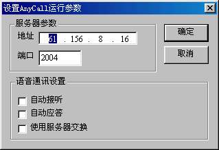 AnyCall還為用戶提供了一些個性化的設(shè)置,點(diǎn)擊AnyCall的設(shè)置按鈕。就會彈出一個對話框在里面有服務(wù)器參數(shù)和語音通訊設(shè)置兩個設(shè)置項(xiàng),如圖4所示。服務(wù)器參數(shù)主要是設(shè)置AnyCall的語音交換服務(wù)器的IP地址和端口,以便進(jìn)行更好的語音傳輸。在語音通訊里面可以設(shè)置自動應(yīng)答,自動接聽。這樣免去了每次來電都要去點(diǎn)接聽按鈕的麻煩。
