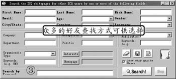 任何一款免費(fèi)軟件的使用過程中,都會(huì)被強(qiáng)制地安插進(jìn)一些廣告內(nèi)容,ICQ也不例外。對(duì)于這一點(diǎn),財(cái)大氣粗的微軟做得很好。無論是Windows XP中捆綁的MSN,還是網(wǎng)上免費(fèi)下載的,幾乎看不到廣告的影子。另外,即使在最新的ICQ2002a中,似乎仍然不能支持網(wǎng)絡(luò)攝像機(jī)和視頻聊天等功能,而這些功能在即時(shí)通訊領(lǐng)域幾乎成了必備的功能。不過,ICQ中強(qiáng)大的查找好友功能,使你只需記住好友的哪怕是一點(diǎn)點(diǎn)信息,就可以輕松找到這位好友,令任何一款即時(shí)通訊軟件都望塵莫及(如圖3)。新版2002a中還新增了服務(wù)器保存好友信息的功能,使得在世界任何一個(gè)角落都可以及時(shí)方便地與好友進(jìn)行聯(lián)絡(luò)。