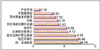 用戶重要性評(píng)價(jià)較高4≤Y<4.5的指標(biāo)主要有:穩(wěn)定可靠性、技術(shù)支持和售后服務(wù)、多媒體功能強(qiáng)大、安全性四項(xiàng)。由于視頻會(huì)議系統(tǒng)提供的是實(shí)時(shí)視音頻交互通訊,系統(tǒng)的任何不穩(wěn)定都會(huì)在圖像和聲音上表現(xiàn)出來(lái),因此穩(wěn)定可靠性對(duì)視頻會(huì)議系統(tǒng)來(lái)說(shuō)是至關(guān)重要的。