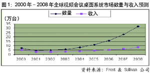國內的研究機構也不甘落后,對2002年內地視頻會議市場銷售額的預測高達20億至40億元人民幣不等。而眾多廠商也一致認為,未來的一段時間將成為視頻通信,尤其是視頻會議市場發(fā)展的黃金時期。