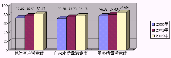 (2)率先建立以公布水質(zhì)信息為特點的客戶宣傳系列。過去水質(zhì)具有保密性,不能向外公開。近年來,市政府為改善水質(zhì)投入了大量的資金,使自來水質(zhì)量達到或超過了國家飲用水標準,但受各種飲用水產(chǎn)品的宣傳影響,人們對自來水疑慮重重。據(jù)客戶滿意度調(diào)查,客戶對水質(zhì)的重視程度為0.63,遠遠高于對水量0.37的重視程度,說明客戶對水質(zhì)的期望值較高。為正確引導客戶的期望,市北公司參照國外先進國家的慣例,爭取政府部門的支持,于2000年率先向社會公布了年度水質(zhì)報告,全面地介紹自來水水質(zhì)指標完成情況,并系統(tǒng)的建立了水質(zhì)信息公布制度,包括公布年度水質(zhì)報告,每天在公司網(wǎng)站上發(fā)布主要水質(zhì)指標及水壓、水量信息。在此基礎(chǔ)上,公司又編印"市北供水服務"小報,定期發(fā)放至市北供水區(qū)域的數(shù)千家居委會和物業(yè)公司及相關(guān)部門。特別從今年開始,公司通過改版后新水費帳單上的"市北供水服務"宣傳欄,又與廣大客戶建立了新的信息溝通渠道,初步形成了市北公司的客戶宣傳構(gòu)架,用較低的宣傳成本提高了客戶滿意度。