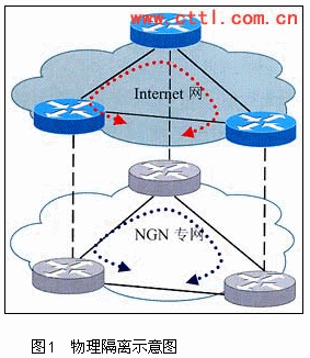 為了滿足NGN業(yè)務(wù)的不同需求,需要將NGN業(yè)務(wù)與Internet業(yè)務(wù)進行隔離,這種隔離可以是物理網(wǎng)絡(luò)的隔離,也可以是邏輯網(wǎng)絡(luò)的隔離。