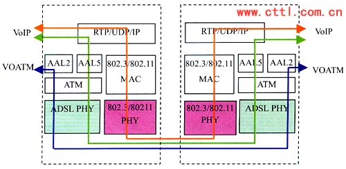 國內(nèi)的寬帶接入技術(shù)發(fā)展很快,xDSL技術(shù)就是其中之一。基于xDSL接入的分組話音的實現(xiàn)方案可以分為VoATMoverDSL和VoIPoverDSL兩種。
