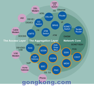 ATCA正在被廣泛應(yīng)用于無線網(wǎng),見圖2中橙色園環(huán)部分,這是由市場對(duì)成本效益,快速部署方案的需求驅(qū)動(dòng)的。服務(wù)提供商和TEM均認(rèn)識(shí)到:用戶愿意為3G網(wǎng)絡(luò)的先進(jìn)功能所付出的只能是少量的附加費(fèi),因此從2G/2.5G向3G轉(zhuǎn)換必須以盡可能低的成本和盡可能靈活的方案來實(shí)施,許多TEM已經(jīng)將ATCA看成滿足快速發(fā)展的無線市場需求的唯一技術(shù)。若基于雙星千兆以太網(wǎng)交換互連,ATCA的性能已經(jīng)很好的滿足無線網(wǎng)要求,因?yàn)檫@些網(wǎng)絡(luò)實(shí)質(zhì)上是低帶寬而高運(yùn)算密度的網(wǎng)絡(luò),對(duì)于實(shí)時(shí)敏感的語音應(yīng)用而言,千兆以太網(wǎng)的高速度已經(jīng)消除了延遲的問題。
