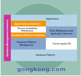 另一個(gè)關(guān)鍵要求是使一個(gè)單元具有最大的性能和最小的成本,例如,每端口成本、每用戶成本、每厄蘭成本等,因此,核心平臺(tái)功能占有的空間要盡量縮小,這意味著一個(gè)ATCA刀片具有中央平臺(tái)管理、高可用性中間件、并支持系統(tǒng)交換互連。