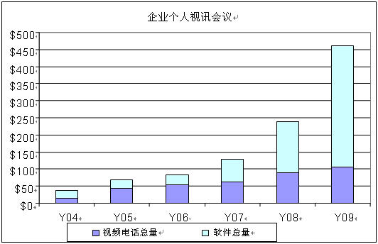 我們相信:對(duì)以IP為基礎(chǔ)進(jìn)行的會(huì)議所產(chǎn)生的興趣會(huì)持續(xù)增強(qiáng)。隨著IP費(fèi)用的暴跌,向IP服務(wù)的遷移要比預(yù)測(cè)的慢很多。跡象表明:2~3年內(nèi),北美、歐洲和亞洲/太平洋地區(qū)將成為使用IP電話的領(lǐng)軍者。我們的預(yù)測(cè)IP遷移曲線與一年前沒(méi)有發(fā)生變化。實(shí)際上,作為一種選擇或一個(gè)標(biāo)準(zhǔn)功能,目前所推出的所有視頻系統(tǒng)均支持IP通信,也有許多視頻系統(tǒng)支持ISDN。我們認(rèn)為:目前所推出的系統(tǒng)中有50%以上適用于IP部署,而且這種趨勢(shì)將會(huì)進(jìn)一步發(fā)展,盡管受眾多遺產(chǎn)系統(tǒng)的影響,世界上所安裝的室內(nèi)系統(tǒng)仍舊是以ISDN為中心的。