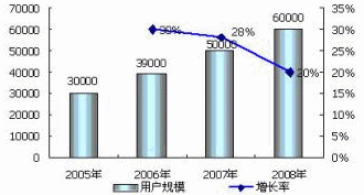 諾盛觀點(diǎn):預(yù)計(jì)2006年移動(dòng)增值業(yè)務(wù)用戶規(guī)模和市場(chǎng)規(guī)模將分別達(dá)到3億和300億,年增長(zhǎng)率分別為30%和36%,且未來(lái)幾年都將保持高速增長(zhǎng);