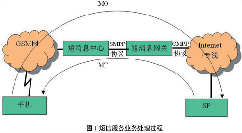 Mobile Peer to Peer)協(xié)議與SP進(jìn)行連接,采用SMPP 3.3協(xié)議與短信中心連接。