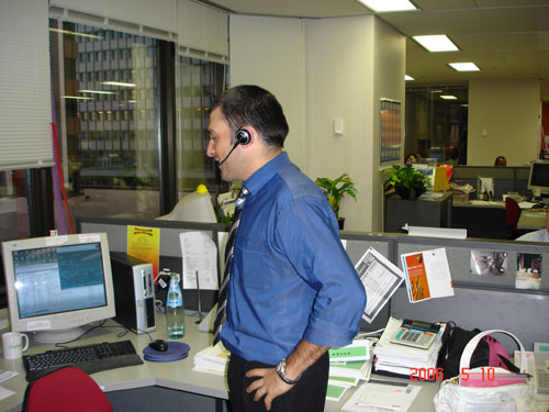 Colonial公司是一家大型的銀行業(yè)務(wù)呼叫中心,座落在悉尼市區(qū)最熱鬧的喬治大街附近,相當(dāng)于我們的上;春B。這里的幾百個(gè)座席分布在寫字樓的好幾個(gè)樓面,所有座席都是使用大北歐的無(wú)線耳嘜-GN9120。筆者記得上月去東京參觀HONDA的呼叫中心,那里只有不到三十個(gè)一線的座席代表使用無(wú)線耳嘜,這里則是所有人都配備了這種先進(jìn)的無(wú)線設(shè)備。筆者看到不少員工站著工作,還有少數(shù)走動(dòng)辦公,員工在座位上可以輕松轉(zhuǎn)身,隨時(shí)調(diào)整姿勢(shì),讓身體處于松弛狀態(tài),這種輕松自如想必電話線那頭的客戶也感同身受。呼叫中心的經(jīng)理Venessa告訴筆者,這里的服務(wù)內(nèi)容比較豐富,對(duì)員工的業(yè)務(wù)能力要求很高,所以他們?yōu)閱T工提供一流的工作環(huán)境以減少人員流失率,降低招聘和培訓(xùn)成本,提高客戶滿意度。