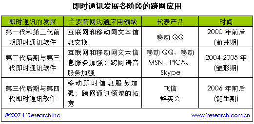 即時通訊發(fā)展各階段的跨網(wǎng)應(yīng)用