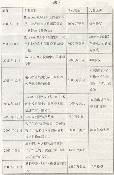 隨著電子信箱、網(wǎng)絡(luò)游戲、即時通訊等用戶數(shù)量的不斷增長,作為第四媒體的網(wǎng)絡(luò)媒體正在變成主流媒體,手機作為新的大眾媒體的概念得到了市場的進一步認可,電信增值業(yè)務(wù)進入了一個新的發(fā)展階段,移動增值業(yè)務(wù)服務(wù)提供商進一步發(fā)展壯大。中國的電信增值業(yè)務(wù)市場不僅使投資者產(chǎn)生了濃厚的興趣,各類資本更是通過不同渠道紛紛進入中國的電信增值業(yè)務(wù)市場。