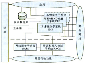 - PSTN/ISDN仿真子系統(tǒng)(PES):為經(jīng)過(guò)網(wǎng)關(guān)連接到IP網(wǎng)的傳統(tǒng)電話終端仿真PSTN/ISDN網(wǎng)絡(luò),保證傳統(tǒng)PSTN/ISDN業(yè)務(wù)的可用性和一致性,使得終端用戶不會(huì)意識(shí)到其實(shí)并沒(méi)有連接到PSTN/ISDN網(wǎng)絡(luò)。