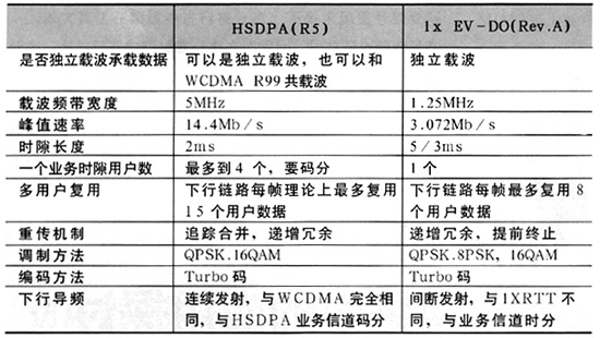 表1 HSDPA與1x EV-DO的參數(shù)比較