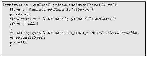 為了使移動裝置能夠訪問這些不同格式的媒體數(shù)據(jù),必需為其設(shè)計一個規(guī)范化的、強大的和可擴充的應(yīng)用接口。J2ME中就提供了一套為規(guī)范的播放和錄制音頻或視頻接口,即Mobile