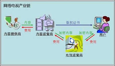 內(nèi)容保護(hù)技術(shù)適用于所有數(shù)字化的資產(chǎn),只不過對(duì)于支持IPTV的ICP們顯得更為迫切,因?yàn)榫W(wǎng)絡(luò)的傳播更為快捷。